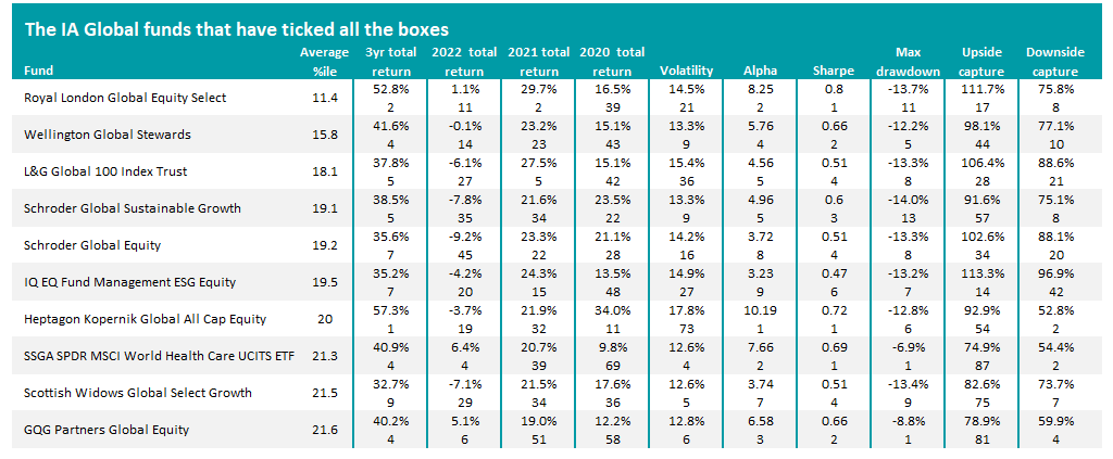 The past three years have given investors plenty to contend with but there are a few global equity funds that have beaten their peers on a wide range of metrics, Trustnet research shows.